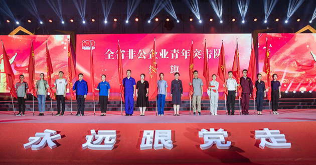 無錫市委常委、高新區(qū)黨工委書記、新吳區(qū)委書記蔣敏,共青團(tuán)江蘇省委副書記張迎春向我司楊雪璁代表授“江蘇省非公企業(yè)青年突擊隊(duì)”旗幟。